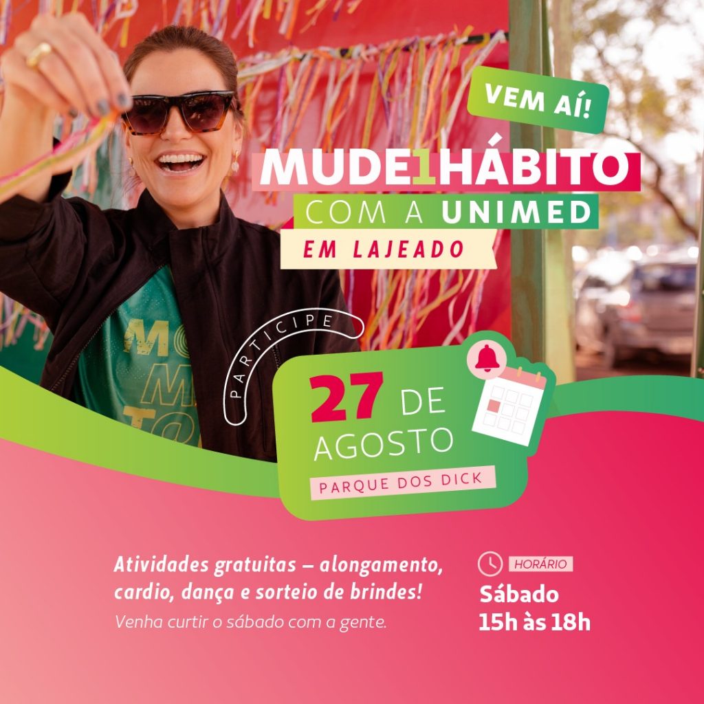 Aproveite esta deixa e já convide a família e amigos para o Evento Mude 1 Hábito com a Unimed em Lajeado. A programação ocorrerá no dia 27/08 a partir das 15h no Parque dos Dick e conta com:
