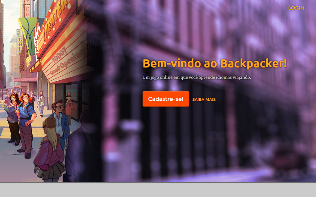 Backpacker Um jogo que simula uma viagem para Nova York, onde os usuários podem conversar com outros jogadores e realizar suas missões para aprender a nova língua. O Backpacker simula a vida real, ele nunca tem fim, mas, existem algumas missões que podem ser cumpridas, assim o usuário aprende inglês realizando as tarefas solicitadas.