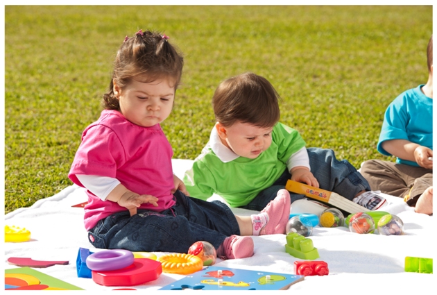 0 a 3 meses Nesta fase, converse e cante para o nenê, emita sons diversos para que ele se interesse – imite o barulho de um carro, por exemplo. Até os 3 meses de vida nossa visão está em processo de aperfeiçoamento, mas já faça caretas, balance objetos coloridos dentro do seu campo de visão, ofereça objetos para que ele tente alcançá-los, olhe nos seus olhos e admire seu sorriso. Com o bebê no colo, dance de forma tranquila. Além de acalmar, a dança proporciona à criança uma maior vinculação com o pai e a mãe. 3 a 6 meses Deite o bebê de barriga para baixo (somente quando estiver acordado) e o incentive a começar a rolar. Faça isso mostrando um brinquedo e em seguida o escondendo para que o bebê procure. As brincadeiras de esconde-esconde são apropriadas pois a criança já é capaz de reconhecer quando algum objeto sai de seu campo de visão, estimulando além da tomada de iniciativa o conhecimento dos objetos, como nas perguntas de onde está determinado objeto ou parte do corpo. Estimule o bebê a bater palmas, conte o que se está fazendo, brinque com ele na frente do espelho, brinque de “pula-pula” o segurando pelas axilas. 6 a 9 meses Ensine o bebê a bater um brinquedo no outro segurando um em cada mão, a encaixar potinhos, a colocar tampa em potinhos, a sentar. Incentive-o a engatinhar, a beijar e a deixar que lhe beijem, faça-o alcançar um brinquedo e oferecê-lo a alguém. Ofereça objetos de várias texturas para ele conhecer, chame-o pelo nome. Nesta etapa, a criança inicia um processo de maior autonomia. Brincadeiras de explorar o ambiente, interação com outras crianças já devem ser estimuladas nesse momento. 9 meses a 1 ano Deixe o bebê engatinhar e entrar embaixo da mesa para conhecer espaços. Ensine os movimentos “tchau”, “sim”, “não” e “vem”, pergunte “onde está a mamãe?”. Deixe-o andar apoiado nos móveis, dê carrinho para empurrar, peça que o ajude a se despir na hora da troca, ajude-o a andar segurando ele pela mão, mostre figuras para que ele aponte o que é. 1 a 2 anos Brinque de construir torres, mostre figuras para que identifique, brinque de “cavalinho”, imite sons de animais, mostre álbuns de fotos, estimule a chutar bola, faça brincadeiras com marionetes. A partir de um ano, opte por brincadeiras que incentivem o vocabulário e a exploração da linguagem verbal. Rasgue papel, rabisque, brinque com tintas, sempre com supervisão de adultos. Brincadeiras que estimulem a motricidade fina e a aquisição de hábitos que farão parte de nossas vidas, com organização dos brinquedos e recolhimento de lixo após as brincadeiras. 2 a 5 anos Período caracterizado pelo aprimoramento das habilidades até então adquiridas, em especial a capacidade de comunicação, locomoção – andar e correr com segurança, subir escadas -, manuseio de objetos e jogos simbólicos. Jogos eletrônicos devem ter seu tempo restrito, mas são importantes para o desenvolvimento da inteligência, inclusive os jogos on-line, nos quais acontece uma interação dos membros jogadores e as crianças acabam vivenciando novas culturas. É muito importante a presença e o monitoramento dos pais nesses casos para tentar identificar possíveis ameaças a seus filhos.