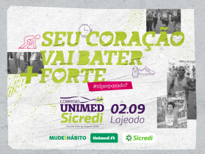 Portanto, agende-se! A edição 2018 do Corridas Unimed/Sicredi será no dia 02 de setembro, um domingo, com concentração em frente às sede da Unimed VTRP e do Sicredi VT, na Avenida Piraí, em Lajeado. A organização da prova já definiu as modalidades presentes neste ano. Haverá percursos para caminhada orientada, corrida adulto, corrida infantojuvenil, corrida especial (médicos Unimed e colaboradores e cooperados Sicredi), academias e grupos de corrida e o circuito para pessoas com cadeiras de rodas.