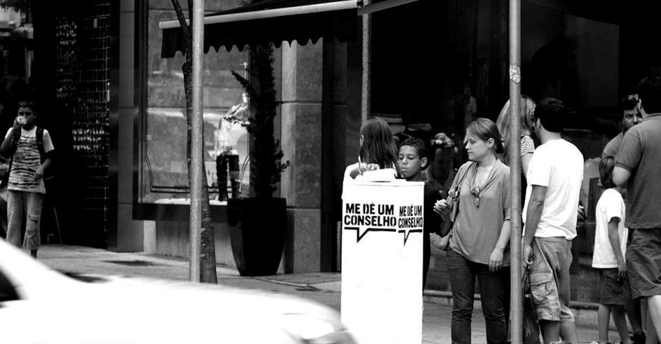 Se você pudesse dar um conselho, qual seria? Foi pensando nisso que o designer Daniel Motta teve a ideia de ir para as ruas de São Paulo com uma caixa escrita “Me dê um conselho“. O projeto inicial era fotografar a reação das pessoas, observá-las enquanto escreviam e depositavam as palavras na urna. Como resultado, Daniel teve mais de 2 mil respostas. Foram tantos dizeres bacanas que ele resolveu lançar um livro. Nele, a compilação de frases desde românticas até as mais “cabeças”.