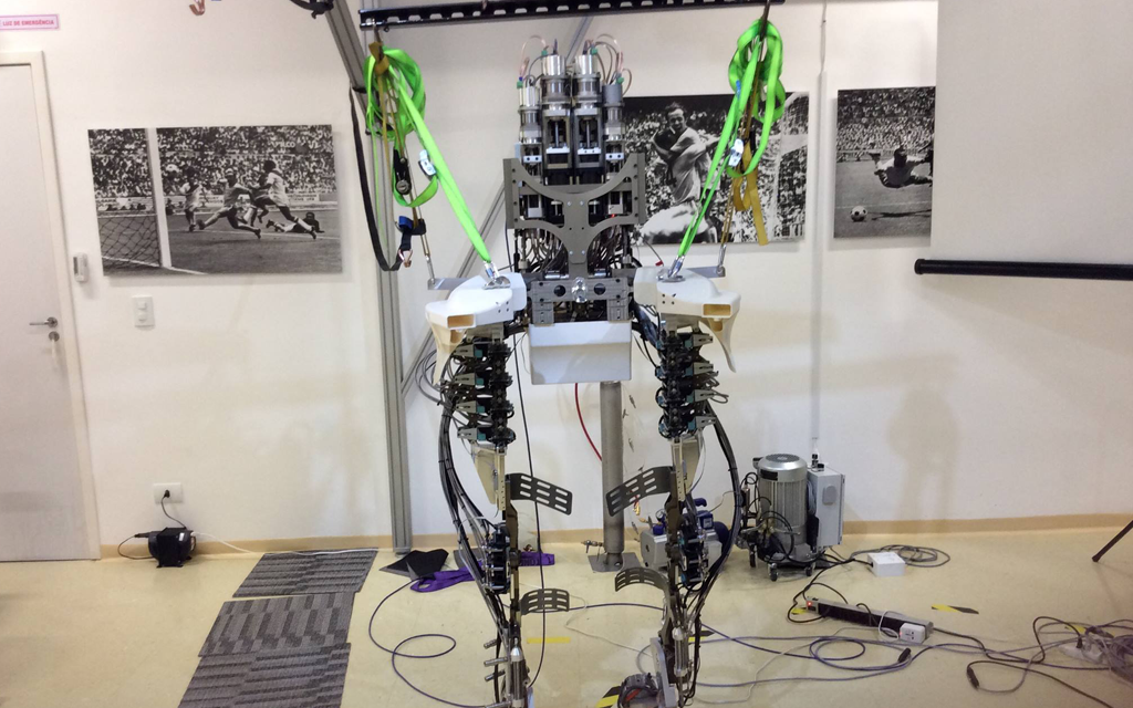 A estrutura foi criada sob o projeto Walk Again, desenvolvido por uma equipe internacional de cientistas, e a partir do trabalho iniciado em 2003 por Miguel Nicolelis, neurocientista e professor brasileiro na Universidade de Duke, na Carolina do Norte. Essa tecnologia dá suporte para a parte inferior do corpo, usando a atividade do cérebro para desencadear o chute. As ondas cerebrais são detectadas através de eletrodos no couro cabeludo, e a tecnologia sem fio é transformada em comandos que produzem movimento no exoesqueleto. Esse movimento será complementado por feedback, para tornar a experiência mais natural. Isso significa que o processo vai incluir sensores para monitorar toque, temperatura e força, que serão alimentados de volta para o usuário através de displays visuais e motores vibratórios. Esses mesmos sinais podem ser retransmitidos diretamente no cérebro do usuário, para permitir que o usuário experimente o movimento como se fosse parte dele.