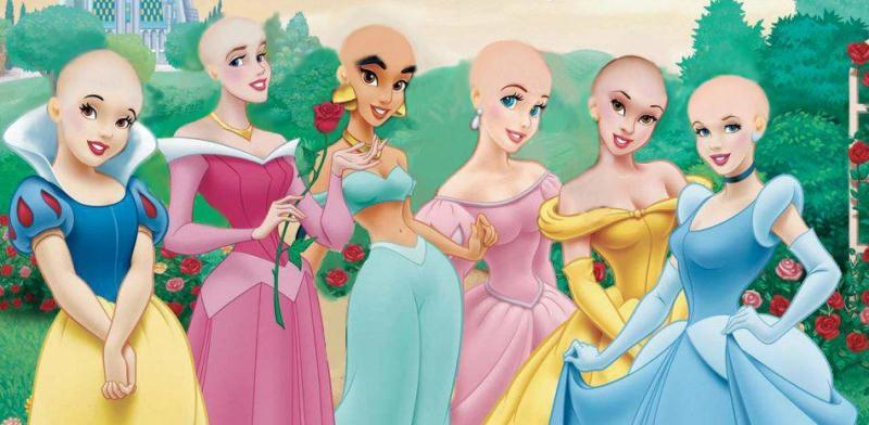 Outra imagem bastante divulgada nas redes sociais foi a das princesas Disney sem os cabelos, a fim de devolver a autoestima de meninas e mulheres que perdem seus cabelos e tratamentos de quimioterapia.