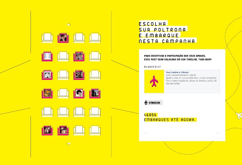 A cidade de Barretos, interior de São Paulo, conta com o maior e mais avançado hospital oncológico da América Latina. O Hospital de Câncer de Barretos atende diariamente, 4 mil pacientes vindos de todo país, que viajam horas ou dias de ônibus para se tratar no local. A campanha Voo Contra o Câncer quer mudar essa realidade, e alerta para o aeroporto que existe a apenas 8 km do hospital. Segundo a iniciativa, existe infraestrutura – a pista é maior que a do Santos Dumond, no Rio de Janeiro, por exemplo – e não faltam passageiros. Só falta as companhias aéreas atenderem o aeroporto de Barretos. Quer Participar? No site www.voocontraocancer.com.br e no aplicativo no Facebook, as pessoas poderão se engajar, além de cutucar as companhias aéreas e enviar mensagens através da ferramenta. A criação é da WMcCann.