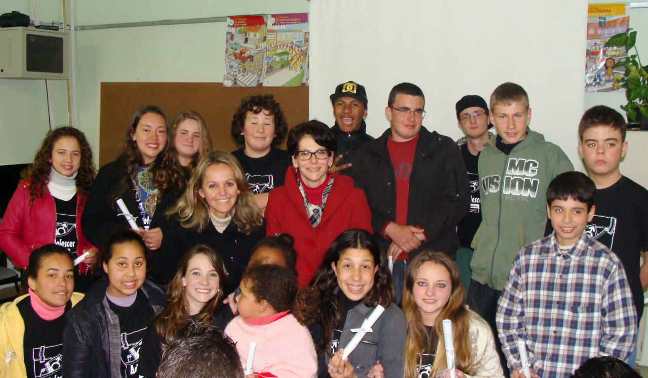 Turma de estudantes que participaram do Adolescer e parte da equipe do programa