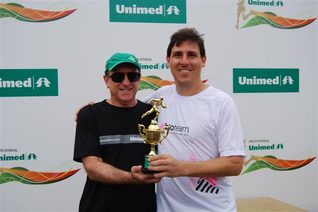 Vice-presidente da Cooperativa, o médico Aldo Pricladnitzki, entrega o troféu ao representante da equipe Bioteam